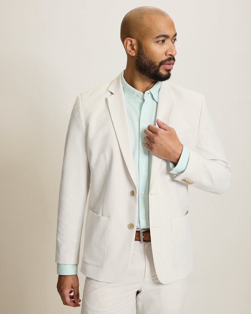Have a special occasion this season that calls for a suit? With a hint of stretch in its breathable seersucker design, this subtly striped blazer offers easy, lightweight comfort so your spring suiting feels anything but stuffy—and always looks elevated.