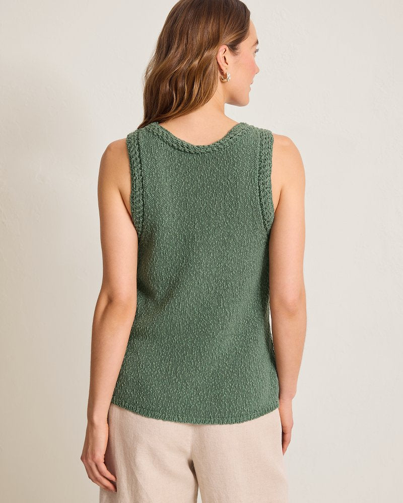 Spun from a lightweight linen blend that transports you straight to paradise, this chic sweater tank, complete with trendy crochet trim, is the only knit you need to elevate your everyday outfitting for the seasons ahead.