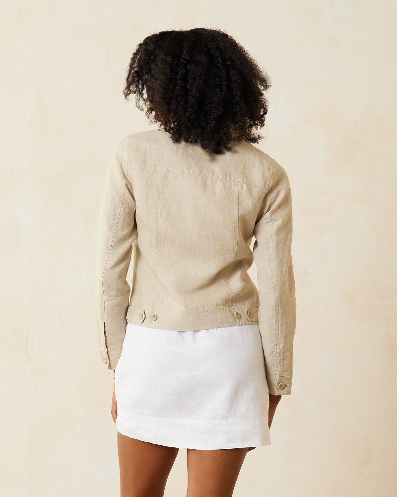 It's the breezy Two Palms fabric you know and love in a crisp, classic, clean-edge jacket that pairs perfectly with a walk along the beach or cocktails with friends.