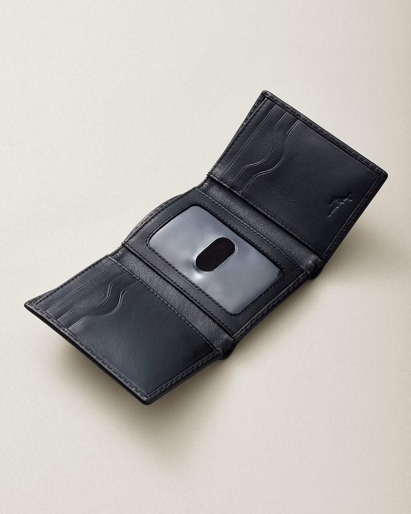 Sleekly keep all your essential cards and cash secure in this thoughtfully designed trifold wallet, crafted from genuine leather with an elevated stitchwork outline and embossed Marlin logo.
