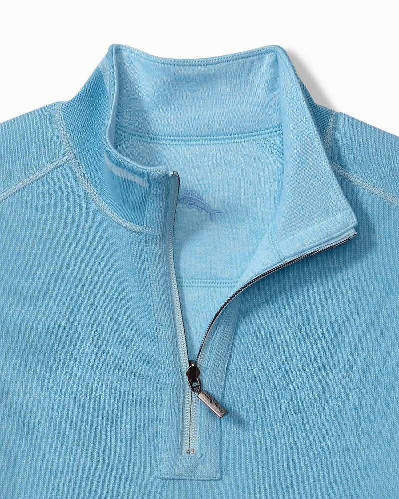 Flip the script from polished to casual without missing a beat in our versatile Flip Coast Collection. For a sophisticated look, the heathered face side of this versatile half-zip features elevated trim at the collar, cuffs, and hem, while on the reverse side, a subtle jacquard pattern with tonal stitching sets an easy, relaxed tone for everyday living.