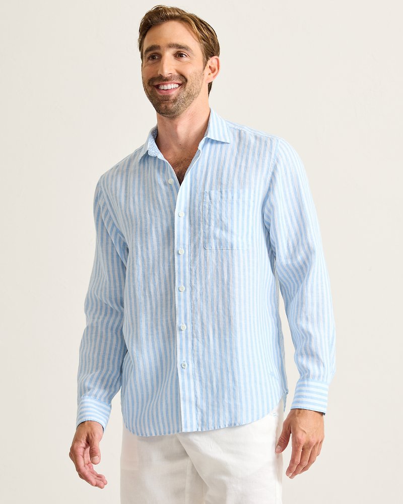 Crafted from naturally breathable linen, this shirt eases you into elevated comfort with a soft, relaxed fit and a cheerful stripe pattern that instantly emboldens your wardrobe.