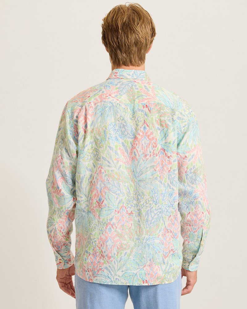 RSVP yes in an elevated, crisp linen shirt with a vibrant mood-boosting print and plenty of personality.