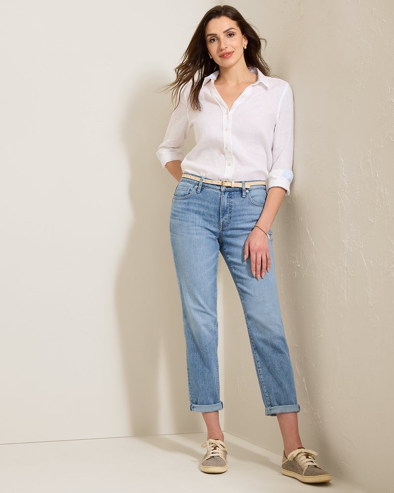 "From ""boyfriend"" to ""best-friend,"" this pair of relaxed, everyday denim is easy to wear and universally flattering. This slimmer take on a traditional boyfriend cut has an effortless vibe that still looks put together—cuff the hems to up the cool factor."